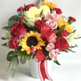 Price: $98.00 Mad About You bouquet comes with a 6” Heart Cookie by B’s Sweet Treats & More Product Tags: Next-day Delivery